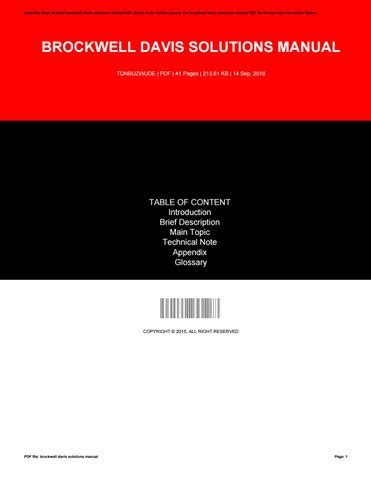 CFH - Read Online BROCKWELL DAVIS SOLUTIONS MANUAL Hardcover BookBoon